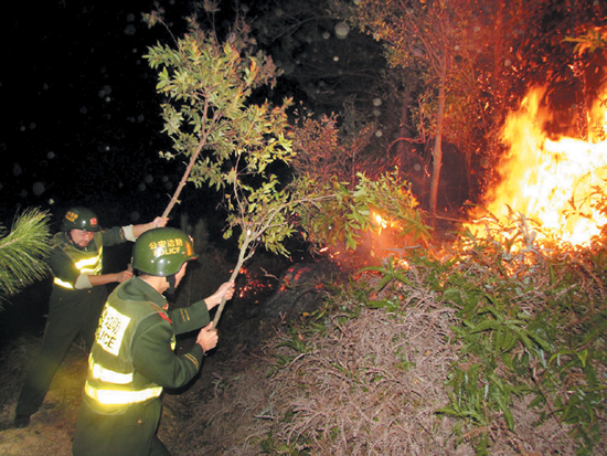 本报讯(王贻俊)12月11日17时35分许,秦屿边防派出所接110指挥中心转警称:太姥山镇樟岐村后山发生山林大火,请求支援。接警后,边防所官兵立即出警,经过2个多小时的努力,最终将山火扑灭。 到达现场后,只见现场浓烟滚滚,火光熊熊,火势借助风力正向四周迅速蔓延,直接威胁到居住在附近的200多户群众的生命和财产安全,情况十分危急。见状,这个所官兵立即兵分两组,其中一组与消防人员一道用灭火器、树枝等全力展开扑救;另一组与驻地群众一起用铁锹、锄头、镰刀等工具,设立防火隔离带,将火源处及其周围的可燃物移开,经过官兵2个多小时的奋战,大火被成功扑灭。