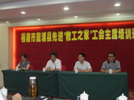 2012年暑假期间,福建省总工会干部学校与福鼎市、霞浦县教育工会联合举办县级以上先进“教工之家”工会主席培训班。福鼎市有20位校长和工会主席、霞浦县有26位工会主席参加了培训班。省总干校校长李平出席开班仪式并做了动员讲话,霞浦县工会主席俞承宝代表两县(市)培训学员做了表态性发言,省总干校教务主任谭炜主持了开班仪式。
