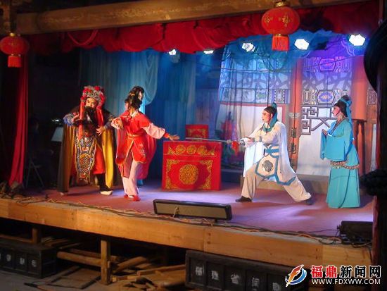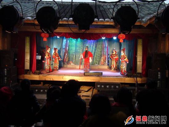 正月初五,磻溪仙蒲村邀请戏剧团上演大戏,丰富节日群众文化生活,受到群众喜爱。 2月4日,笔者在磻溪镇仙蒲村看到,位于仙蒲村祠堂的古戏台上,传统闽剧正在上演。吸引全村男女老少前来观看,他们早就盼望着大戏演出,平常只在电视里才能看到,今天在村里就能看到,人人脸上洋溢着喜悦的笑容。