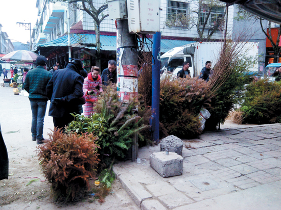 日前,管阳镇农民将杉树、松树苗等放在集镇叫卖(如图)。俗话说:“正月树、二月竹。”正月是栽树的好季节,我市许多农民利用这一农闲时间,到集镇或苗木市场购买苗木,丰山育林。 凌 宵 摄