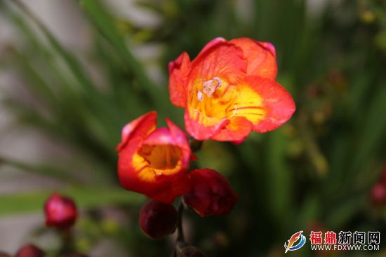 近日,福鼎市点头镇居民陈先生家的一盆香水兰开花,花开红色,花瓣上带着一缕黄色,花开时散发出阵阵清香,沁人心脾。