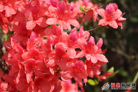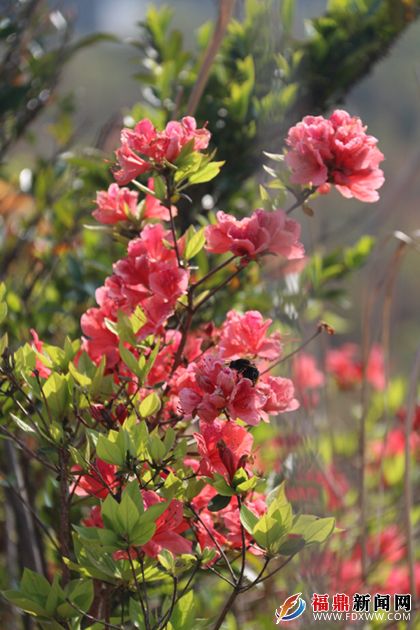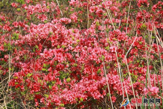 连日来, 在闽浙边界的一处俗名合掌岩的山头开满了鲜红的野生杜鹃花,灿烂的花朵美如云霞,殷红似火,竟有连绵一二十公里尽为杜鹃花“花海”的绚丽奇观,美不胜收。