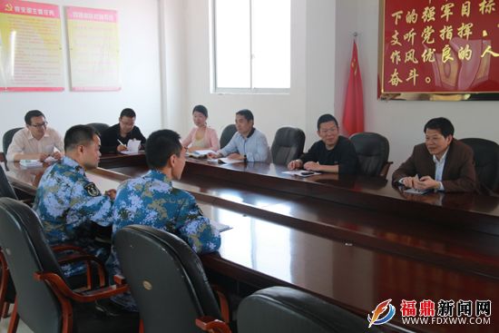 在海拔370多米的驻鼎合掌岩海军部队的军营内,领导班子成员一行参观了部队的党员活动室、党的群众路线教育实践活动宣传阵地等,并与部队举行军民座谈会,与部队官兵们共同座谈交流学习心得和开展教育实践活动的经验体会,共同探讨推动教育实践活动的深入开展。