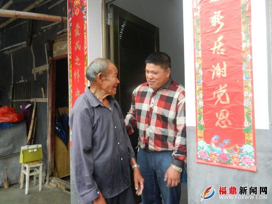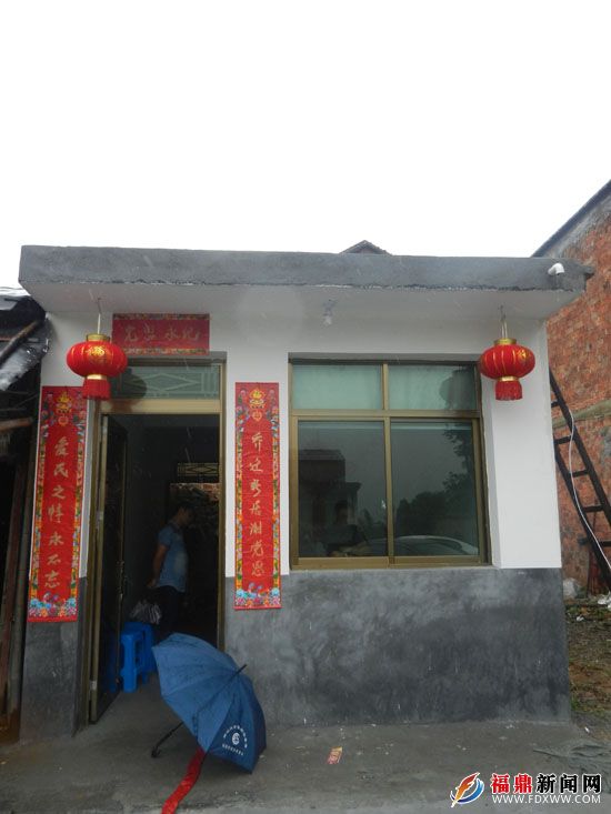 爆竹声声,佳阳乡水口自然村的无住房困难党员蓝清营迎来了新房乔迁之喜,尽管天空飘着小雨,却丝毫没有抵挡喜庆的氛围。一大早,佳阳乡村干部为老人送来了大米、食用油等生活用品,帮助老人挂灯笼、整理被褥、刷洗碗筷。新屋门前,一副用红纸写的对联特别醒目,“乔迁新居谢党恩,爱民之情用不忘”表达了老人乔迁新居喜悦和感激之情。老人蓝清营今年已85岁高龄,系一名孤寡老人、退伍军人。老人的房子在去年的台风“菲特”中刮倒,暂居在简易搭盖中,得知这一情况,佳阳乡村干部主动作为,帮助老人进行及时申报,并在简易搭盖旁建起了一座一层的钢筋水泥房,村主任还从自家搬来了电视,手把手教老人使用。