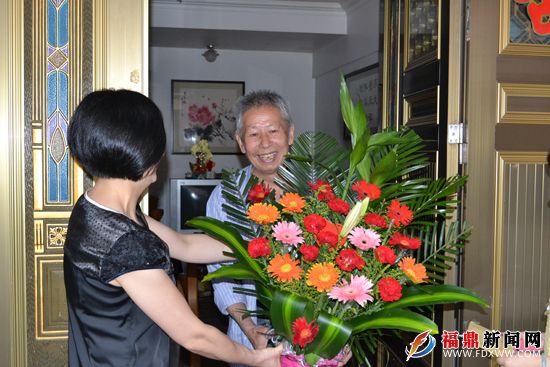 在81岁老党员林逢协家中,社区工作人员仔细询问现在的生活,并向他致以节日的问候。希望他继续发挥党员的带头作用,支持社区工作。