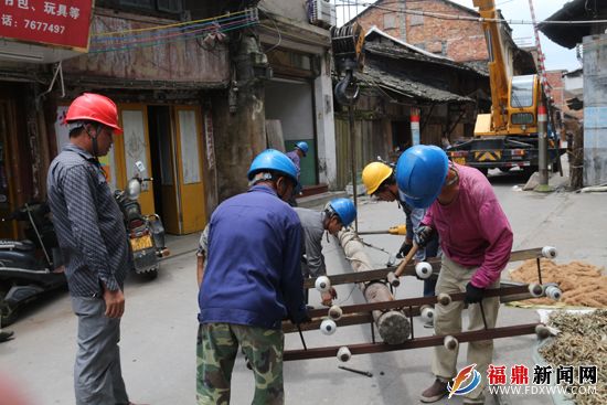 当天下午,笔者再次来到施工现场看到,在大型吊车的配合下,施工人员将设立在街道旁电线杆一根一根拆除,截止笔者发稿时,老街区的15根电线杆已全部拆除完毕。