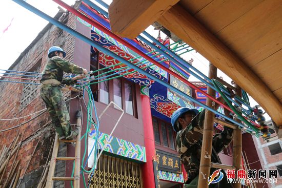 8月11日上午,在横街水井面片区的施工现场,技术人员、施工人员正在安装新变压器,认真谨慎地将一根根电线拉往线改区域,改造民房的接户线网、装置瓷瓶,有条不紊。