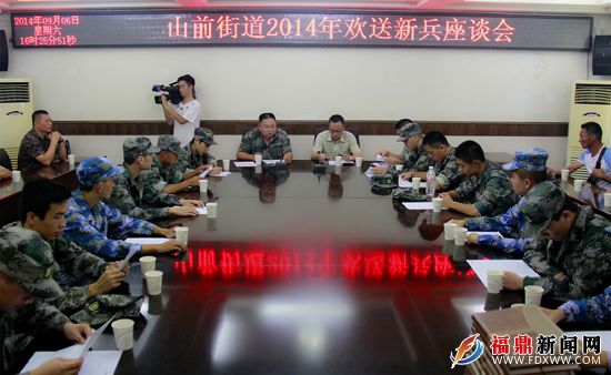 本报讯(张海洲)9月6日,山前街道召开2014年欢送新兵座谈会,入伍新兵及家长,各村、社区书记、主任等参加座谈会。