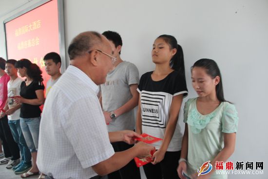 此次受资助的学生共11名,分别来自初中、高中年段的孤儿、单亲、病灾特困家庭。资助资金来源于福鼎大酒店,这是该企业第二年资助福鼎二中特困中学生。助学金由慈善总会发放到每个学生手中,初中生每个月10号将领到200元生活费、高中生每个月领到300元生活费,生活补贴费一学年发放10个月。爱心企业福鼎国际大酒店承诺助学活动将贯穿困难学生初高中学习生涯,帮助他们完成初高中学业。截止目前,福鼎国际大酒店向福鼎二中累计发放助学金6万元。