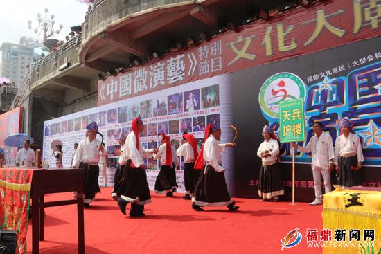 神秘的“武科”装扮,时而,吹法螺摇铃刀 、口念法咒;时而移动禹步、踊踏欢唱。29日上午,民间艺人丁振礼、林昌景等5名民间艺人在“9.28”福鼎微演艺舞台表演的道教法事——行罡步斗,浓郁的原生态色彩的民俗表演,让参观的市民和游客一饱眼福,直呼过瘾(如图)。