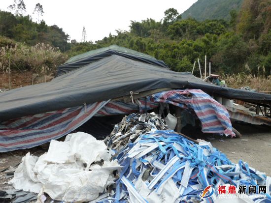 在加工窝点记者看到,印有化肥、化工等字样的废弃塑料编织袋堆积成山,现场散发着阵阵刺鼻的恶臭。在一间二十多平方的简陋破旧棚屋内,摆放着粉碎机、塑料造颗机、切粒机等塑料米生产设备。现场还发现没有经过任何消毒、废水处理、毒烟净化等措施的废水直接流入农田边的小溪,将会对下游桐山溪造成严重的环境污染。
