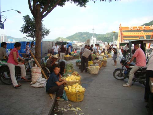 前岐蜜瓜丰收 瓜农扎堆桐山大桥