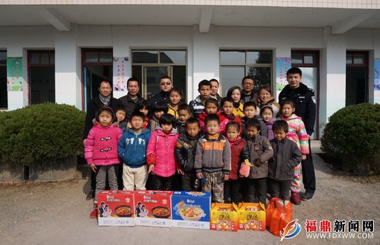 1月26日,点头派出所民警带着新年礼物来到山柘村山柘小学,看望了在这儿学习的19个留守及外来务工农民工的孩子。