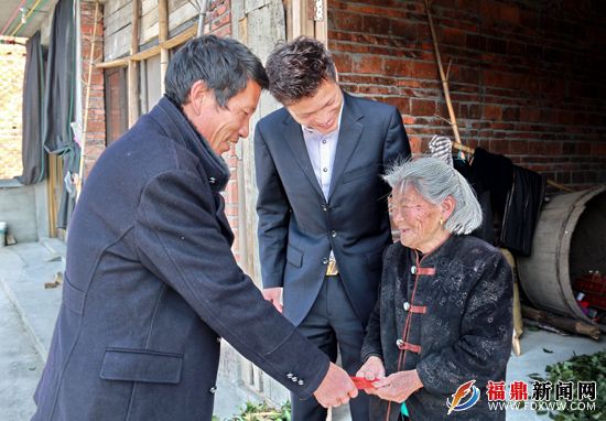 蔡家父子先后来到村里的柘坪、王家洋、企头、后俊等12个自然村,挨家挨户探望八旬以上的老人,为老人们送上新春祝福和慰问金,将温暖和关怀送到老人心中。 据了解,此次共慰问村里的35位高龄老人,并以八旬以上老人每人两百元、九旬以上老人每人五百元的标准发放慰问金,而今年蔡家父子还对村里的5户贫困户家庭进行了走访慰问,为每户送上300元的慰问金,让村里贫困家庭也感受到浓浓的社会关爱之情。
