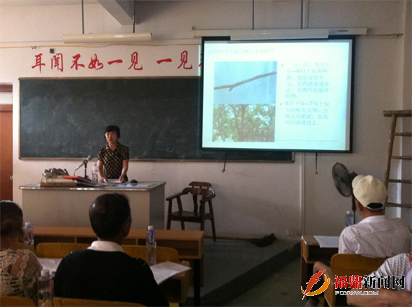 培训会上,孔悦平就已进入产果期栀子树的管理作了专题讲座。深入浅出的介绍了这两年新栽幼树的管理方法,并重点针对福鼎黄栀子在夏季的病虫害防治以及秋季时喷药、施肥的注意事项进行了详细讲解。培训会前后,市调研员、扶贫开发协会常务副会长李逸洲以及市扶贫开发协会会长张乃生分别对福鼎黄栀子的发展作了讲话。培训班授课结合幻灯图片放映,使参加培训的栀农和种植大户对种植的技术要求、管理过程有了比较直观的了解,取得了较好的培训效果。
