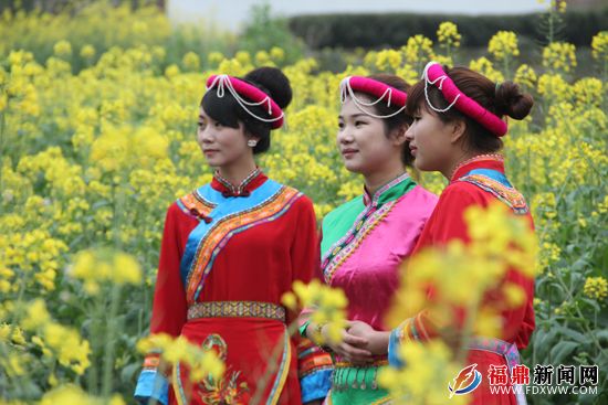 三月,灿漫的油菜花海,夺人眼球,一直是媒体的宠儿。近日,在双华村里灿漫的油菜花田里,身着特色畲装的畲家妹子,哼着歌、踏着轻快的步子,游走其间,恰似一道靓丽风景,很是养眼。(佳阳 黄婷婷 郑雨锋)