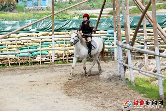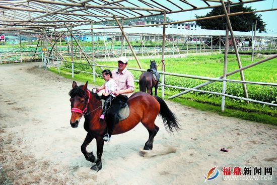 一位小女孩在训马师的帮助下,体验了一回骑马(如上图)。店下岚亭骏风马术俱乐部自今年正月对外开放以来,游人如织。据了解,该俱乐部是由岚亭村乡贤王克乾投入近百万元成立的,旨在进一步发展农村观光体验游,为村民增加就业,带动致富。