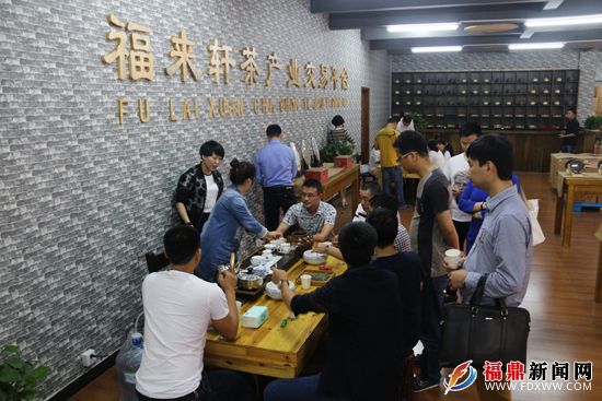 考察团一行首先前往今年新开张的福来轩茶产业交易平台,听取了企业负责人陈林先生对“福鼎白茶”地域特性、茶文化的内涵、茶史茶事、茶道精神以及现在的茶叶包装、营销管理和发展前景情况介绍。
