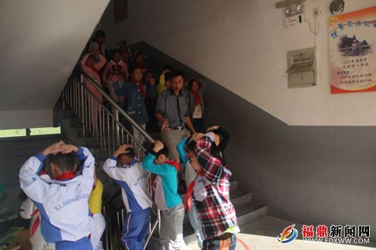 随着一阵急促的警报声响起,防震应急疏散演练活动拉开了序幕,负责楼道、楼梯安全的安全员和班主任迅速到位,组织学生就近躲避,学生也迅速自觉双手抱头躲在课桌下。1分钟后,疏散命令下达,学生在教师的组织下按照既定的路线紧张有序撤离,全校1800多名学生历时3分多钟全部撤离到塑胶操场,整个过程井然有序。