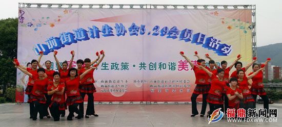5月25日,福鼎市山前街道计生办、计生协会联合市老体协拳功操等单位在山前村文化广场开展“5.29计生协会会员活动日”宣传活动。这次展演活动由福鼎市山前街道石亭社区、铁塘社区、市老体协、程家洞社区、山前社区、市农村信用社承办。