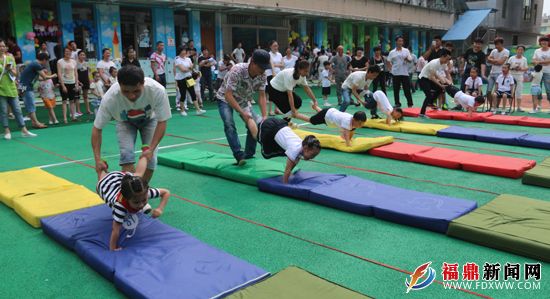 趣味竞赛活动项目设有:障碍往返跑、揪尾巴、投篮、填水缸、小不点找妈妈、小推车等六项趣味比赛项目,在竞赛场上,小运动员们最小年龄仅3周岁,最大6周岁。各参赛家庭严阵以待,随着裁判员的一声哨响,各参赛家庭组合投入紧张的解逐中。小选手们动作协调、反应敏捷、与父母配合默契,赢得在场家长、师生阵阵喝彩声,赛场上呐喊声、喝彩声此起彼伏,欢声笑语连接不断,孩子们在独特的趣味竞赛活动中体味亲情,感受快乐。