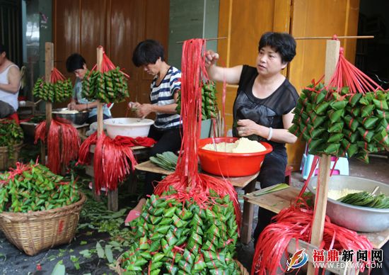 裹粽子是端午节的前奏,虽然距离端午节还有20多天的时间,但在福鼎市点头镇汇龙路的“头年粽”加工作坊早已热闹了,居民妇女们围坐在一起包着粽子,空气中弥漫着阵阵粽香,让人早早就感受到扑面而来的节日气氛。