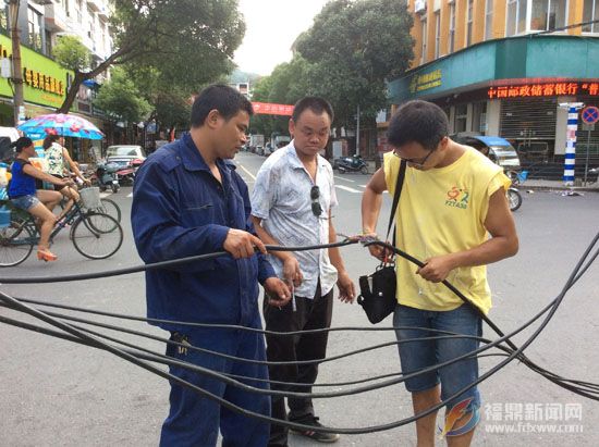 点头集镇一路口多家缆线被刮断 维修人员及时抢修