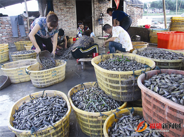 福鼎新闻网讯(朱乃章)当前正是海蛏养殖最肥满上市的最佳时节。近日,福鼎市点头镇龙田村的渔民在垦区养殖滩涂收获海蛏。据悉,由于气温适宜,加上管理得当,今年海蛏比往年的个头要大,市场价比2011年有所上扬,预计今年产量产值比往年皆有所增长。