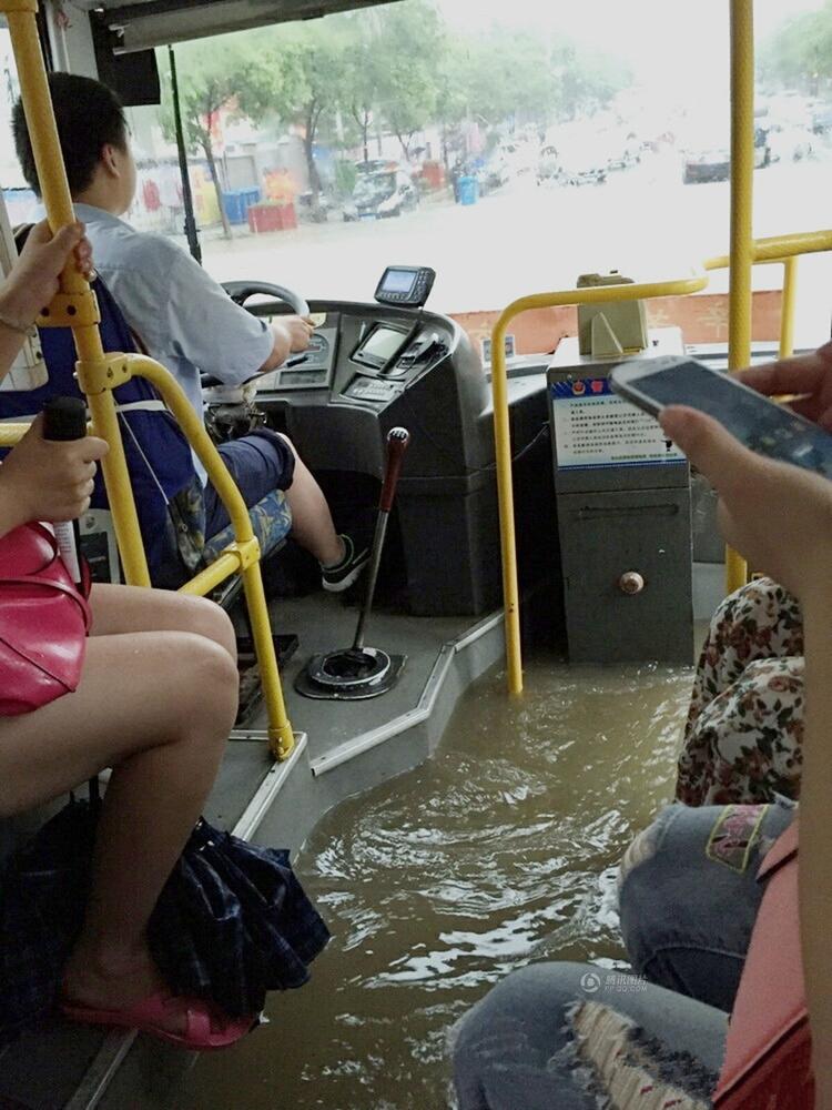 一辆公交车进水,网友吐槽车变成了船。网友@香菇小豆包/东方IC