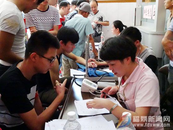 福鼎新闻网讯 7月29日,磻溪镇人民武装部组织全镇适龄青年在镇卫生院进行2015年征兵初检。初检项目主要有身高、体重、视力、内科、外科、血压、血样化验等。据统计,全镇51人参加初检,文化程度较高,其中,大学生进站体检15人,占30%。