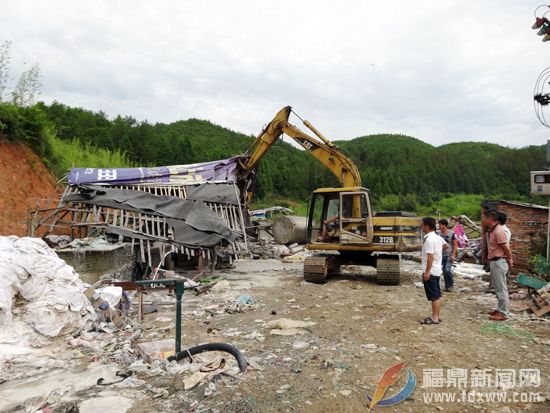 最近,磻溪镇接到群众举报,称在该镇南广村的山林内有一塑料粒加工窝点,加工过程产生的废水未经处理直接排放对周围环境造成严重污染,磻溪镇即时组织供电、民政、公安派出所等部门组成联合执法队,同时租用重型钩机,深入现场对其进行拆毁取缔。执法人员来到加工窝点发现,该处卫生条件极差,地上堆满了散乱的呢绒布条和编织袋等原料,几个简易毛毡房里摆放着几台简易的塑料米生产设备,从现场看存在加工生产的迹象。