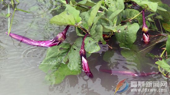 台风有没有什么损失?有水稻、番薯等,水稻就5亩,番薯2—3亩,还有蔬菜农作物,茄子等等都浸泡在水里。