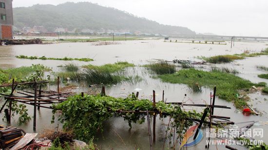 今年第13号台风“苏迪罗”带来了强降雨,点头镇农作物生产受到不同程度的影响,点头镇的依山溪暴涨,而与溪流一丘之隔的垦区内的一片蔬菜园地一片汪洋,在受灾现场,笔者看到,蔬菜大棚在水中只看到骨架,蔬菜全部都浸泡在水里,水里面还浸泡着茄子、空心菜等农作物,一处水面上泡三五个小葫芦。