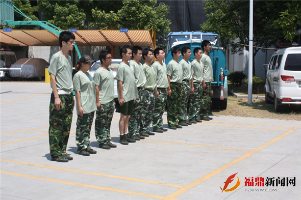 福鼎新闻网讯 近日,福鼎市秦屿镇综合执法大队对今年新招的11名执法队员进行为期一周的军事化训练。图为新队员正在军训当中。易闻 摄
