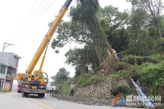 前岐:移除歪脖子树 消除安全隐患