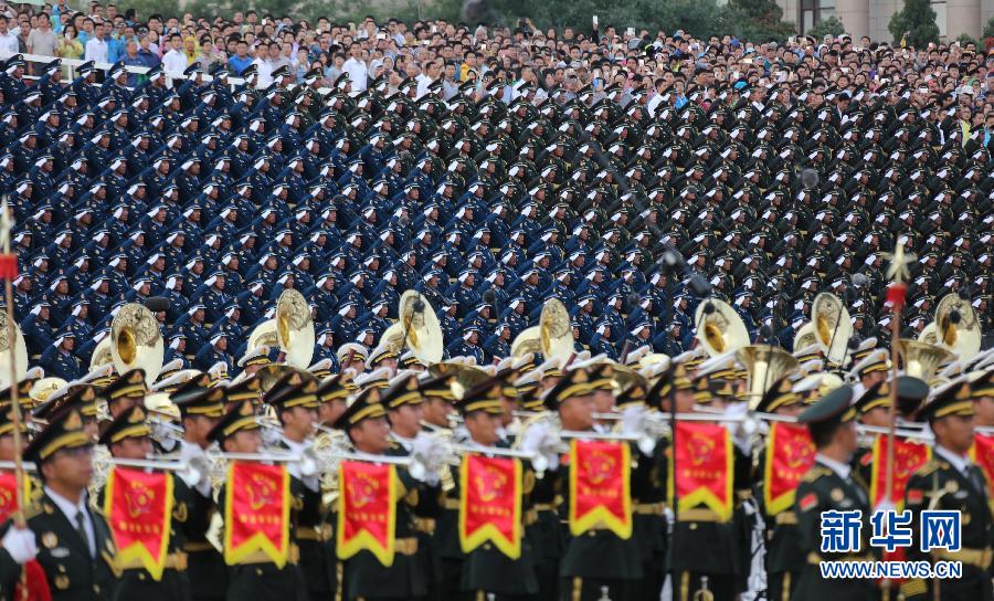 8月22日夜间至23日上午,纪念中国人民抗日战争暨世界反法西斯战争胜利70周年大会专项演练在北京天安门地区及长安街沿线举行。参加演练的人员精神饱满,所有演练过程顺利有序,各项演练取得预期效果,为进一步做好纪念大会的各项组织工作积累了经验。3.5万余名各界观众现场观看了演练。新华社记者 李刚 摄