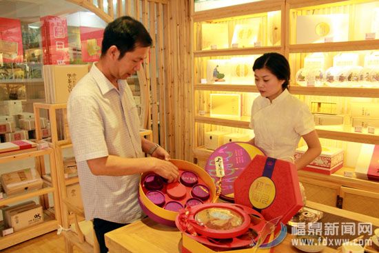 虽然距离中秋佳节还有一个月的时间,但笔者在天丰源茶产业有限公司一站式采购中心看到,各式各样、包装精美的白茶月饼已上架销售,提前抢滩中秋市场。在白茶月饼专区,有“七星捧月”、“团圆贡饼”、“大团圆”等白茶月饼,琳琅满目。其包装图案上融入了浓浓的中国传统文化元素,各式白茶饼尽显“月”色。采购中心相关人员告诉笔者,目前上架有老白茶饼、白牡丹茶饼和新工艺白茶饼等10多款品种白茶月饼,价格在180元至800元之间。今年“福鼎白茶”茶饼的销量明显上升,截至目前,白茶月饼已完成了百余笔比较大宗的交易,目前还有来自北京、辽宁、山东、广东等地茶商的订单几十份,数量万盒以上。在采购中心,笔者还发现了一款新上市的标注为“立秋白茶”的节气茶饼。据了解,“立秋白茶”是一款特殊“节气茶”饼,在二十四节气中,每到清明、小满、芒种、秋分等节气,天丰源的茶园里都会采摘茶叶制成具有独特味道的“节气茶”,具有节气意义的茶叶,也渐渐受到茶客追捧和喜爱。