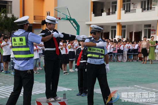 期间,交警大队民警在操场为同学们上了一堂简短的交通安全知识课。用浅显易懂的语言,讲解交通安全的重要性,详细介绍了几种交通标志和基本的交通规则,并在操场为广大师生们展示路口交通模拟演练。交警用标准的交通指挥手势,引导学生安全通过路口斑马线,同时交警还手把手、一对一教小交警学习交通指挥手势。通过紧密贴近生活实际的内容及互动的形式,极大调动了学生们浓厚的兴趣,使他们在愉快的参与中明白了学习交通安全知识,遵守交通法规的重要性,增强了学生们的安全防范意识,提高了自我保护能力。