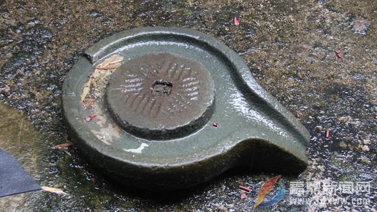 在寺院内的一天井的一角,几个石盆、石臼、石磨、石锤等石器用品并排堆放着,其中有一圆一椭圆二个的石器以及一个青石小石磨下盘较为显眼。圆形石器为石盆,花岗岩质,直径80公分,高17公分,壁厚4公分,盆中底部有个排水孔,整体保存完好。椭圆形石器为石臼,高约100公分、宽有80公分、内槽深90公分左右,二个石器造型浑厚端正,粗犷大气。花岗岩质地坚硬,色泽明丽自然,表面凹凸斑驳,包浆厚重润泽,古韵十足。擦掉石器上边缘的水迹以及尘泥,经过仔细观察发现,虽然外表风化严重,但这两个石器的边缘上还依稀可见刻有“正德十年己亥太岁普照”等字样的铭文。
