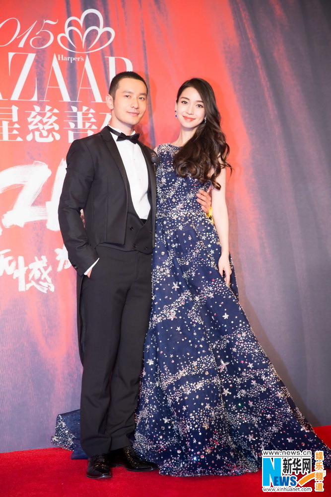 Baby挽黄晓明助阵芭莎慈善夜 满天星长裙秀美背