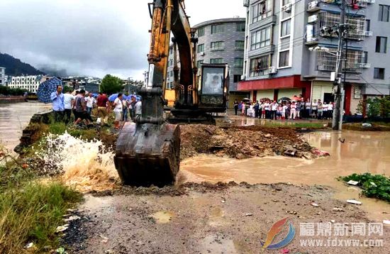 9月29日下午12时左右,受强降雨影响,福鼎市点头镇观洋村洋中自然村低洼地段,排水口被堵,积水难以排出,引发内涝,民房受淹,情况十分危急。点头镇抗台突击队迅速赶赴灾害现场,立即展开应急救援工作。
