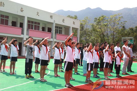 “起来,不愿做奴隶的人们……。”10月1日上午9点多,在磻溪镇赤溪小学操场内,一面五星红旗冉冉升起。红旗下,数十名学生穿着校服,村民着上畲衣,唱着国歌,进行一场庄严而喜庆的升国旗仪式。