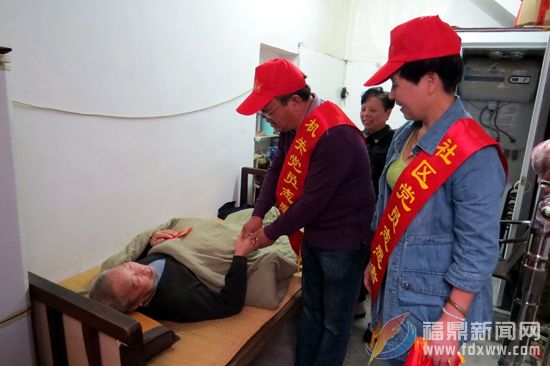 福鼎市卫计局机关、社区党员志愿者在十字社区,通过召开座谈会,共同看望慰问孤寡老人、重病灾老人、残疾老人、特困老人等低保户老人,在社区负责人的陪同下,陈正良副局长详细了解社区老人们的生活状况,鼓励他们保持乐观积极心态,安度晚年。在陈正良副局长带领下,党员志愿者们深入洪桂英老人家中帮助扫地、擦桌子和打扫卫生。随后,陈正良副局长等志愿者还走访慰问残疾、重病贫困老人。