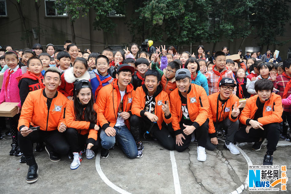 11月8日下午13时许,带着成摞的新跑鞋和成堆的新图书,7位跑男团成员亲临南京某民工子弟学校。一到学校操场,孩子们发出了热烈的欢呼声,以至于几乎湮没了邓超的问候:“你们好吗?”有孩子不敢相信自己眼前的就是“电视上的跑男团”,邓超“严肃”地表示:“我们是真的,不信你们摸!”