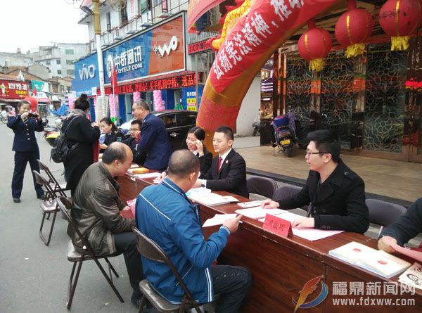 12月4日,太姥山镇组织司法所、法庭、工商、团委、妇联等多个部门,在全镇范围内开展“12·4”全国法制宣传日活动。