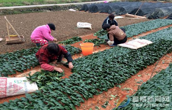 林开灼告诉笔者,这几年随着当地茶产业的不断壮大,新发展茶园和老茶园的品种不断更新,以及茶苗的外调中西部及国内各产茶区,市场对优质茶苗的需求量较大,种植效益好。今年他在自己村里培育5亩苗圃的基础上,又租用了2亩多地,培育“福鼎大白”、“福鼎大毫”等优质茶苗。今年从农历十月初开始就陆续扦插,由于秋冬季雨水较多,影响了扦插进度,但随着天气转晴,一周内就可以将苗穗全部扦插完毕。