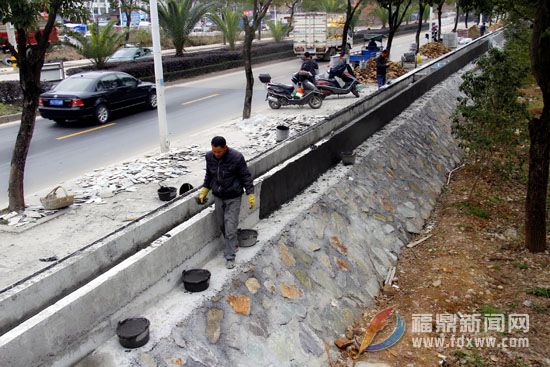 福鼎新闻网讯(张海洲)1月27日,记者于山前灰窑至增坪路段沿桐山溪畔看到,施工人员正在修筑水泥墙,更换瓷砖,水泥墙中间的凹槽处未来将安置上绿色植物,为桐山溪再添新绿。不仅如此,水泥墙下的防洪堤坝已得到加高加固,而这只是桐山溪灰窑至增坪段堤防工程中的一小部分。