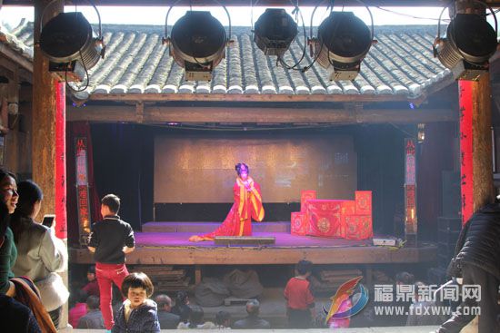 2月12日,大年初五。磻溪镇的中国历史文化名村仙蒲村祠堂的古戏台上,传统闽剧目《真假太子妃》正在上演,吸引全村男女老少前来观看,让村民过足了戏瘾。