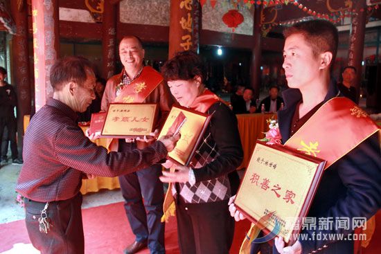 为传承中华民族优秀传统,推动美好家庭建设,倡导尊老爱幼、互敬互爱的社会风气。祭祖仪式之后,举行特别颁奖仪式,为获得宁德市闽学传统文化研究会嘉奖的3个家庭颁发奖牌、证书和奖金。沉甸甸的奖牌、鲜红的荣誉证书,不仅让模范们收获了尊重,同时也坚定了他(她)们在孝德路上继续前行的稳健步伐。