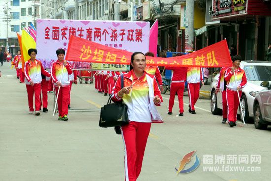 沙埕镇举行庆三八腰鼓踩街宣传二孩政策活动